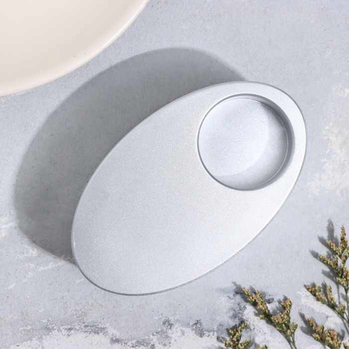 Подсвечник "Узкий овал. Мрамор" из гипса,11,5х7х4см,серебро