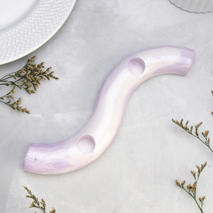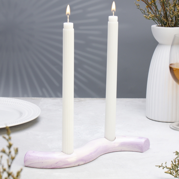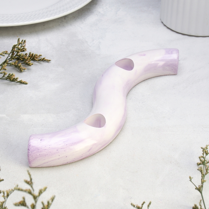 Подсвечник "Волны" для двух свечей из гипса,25х6х3см,мрамор с фиолетовыми полосками