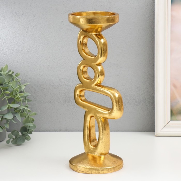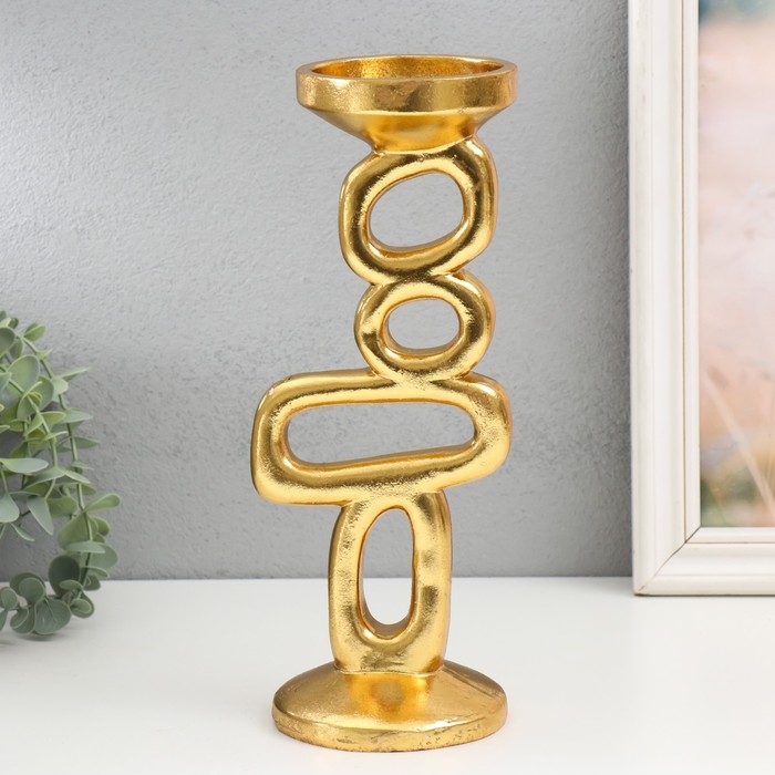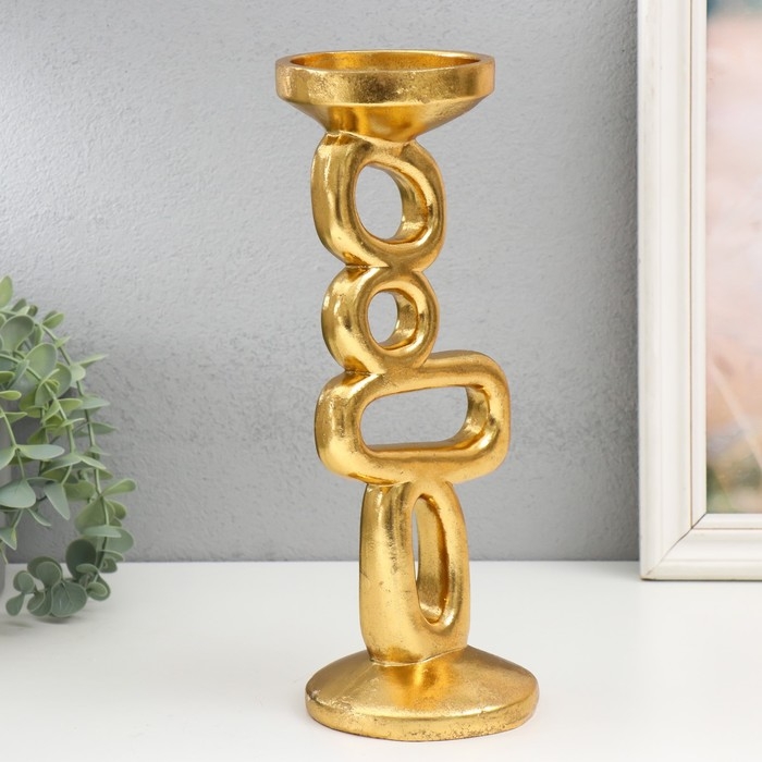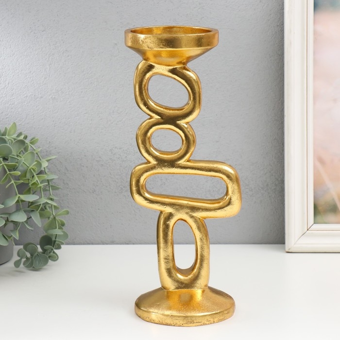 Подсвеник полистоун на 1 свечу "Абстракция. Геометрия" золото 10,5х12х30 см