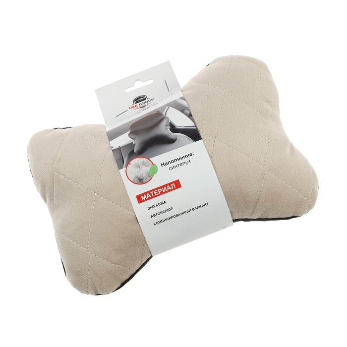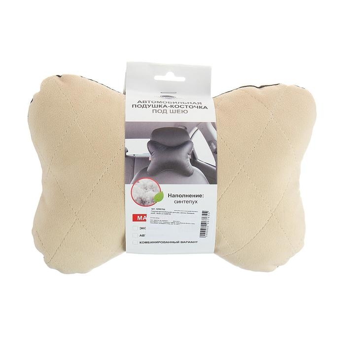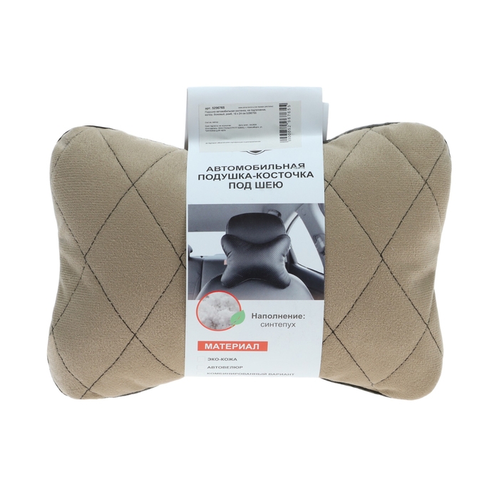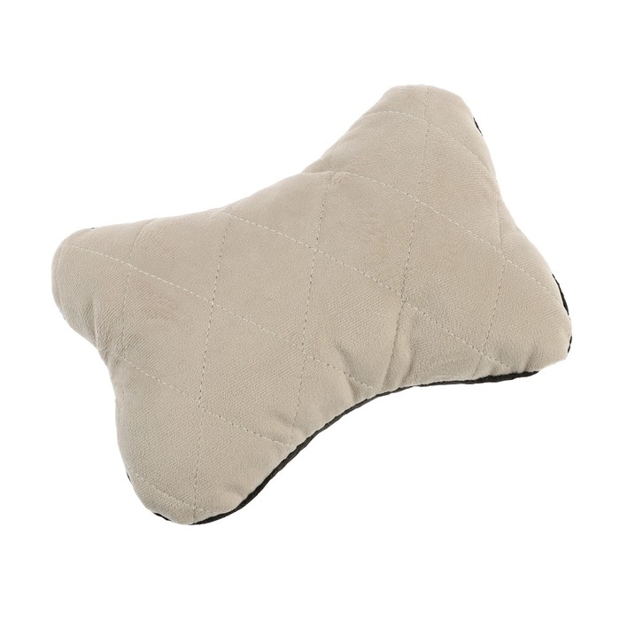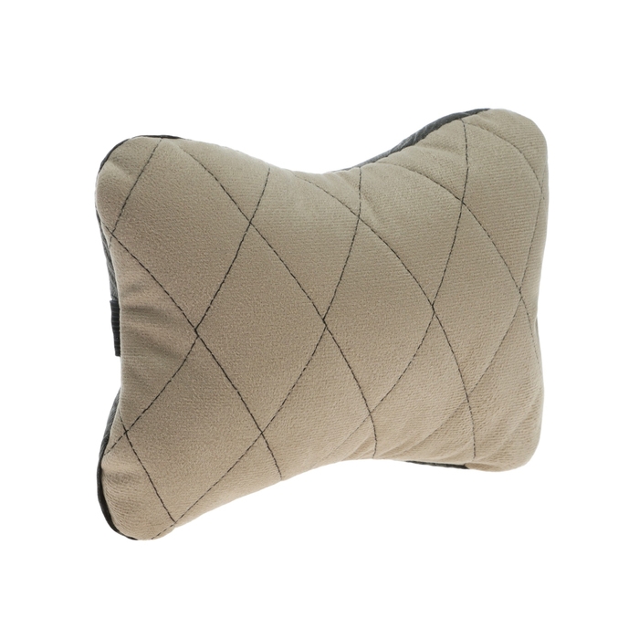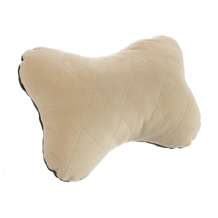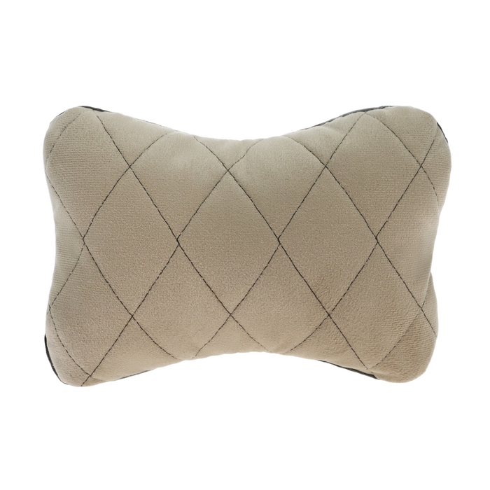 Подушка автомобильная косточка, на подголовник, велюр, бежевый, ромб, 16 х 24 см