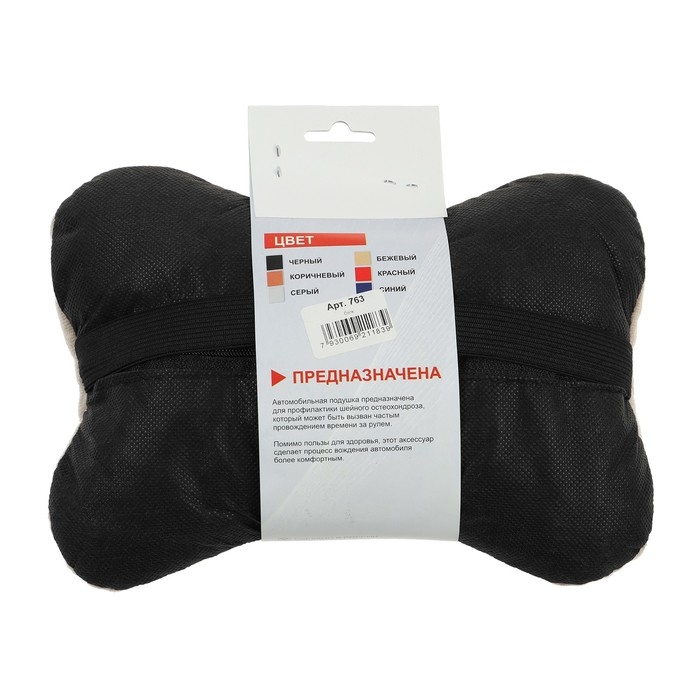 Подушка автомобильная косточка, на подголовник, экокожа, чёрный, 16х24 см