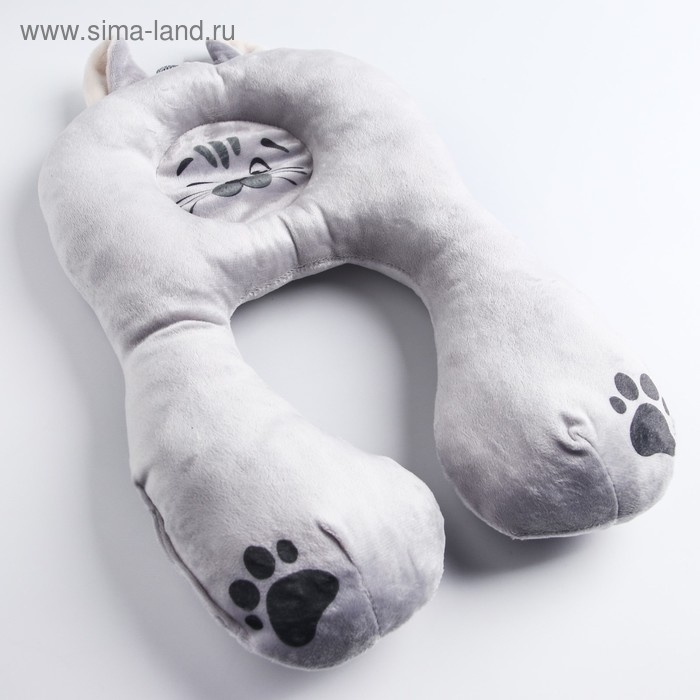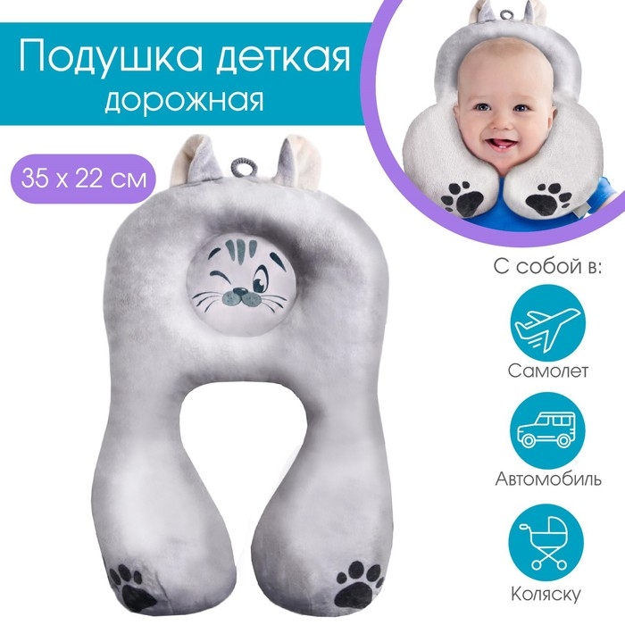 Подушка дорожная детская для путешествий «Котенок», ортопедическая, цвет серый