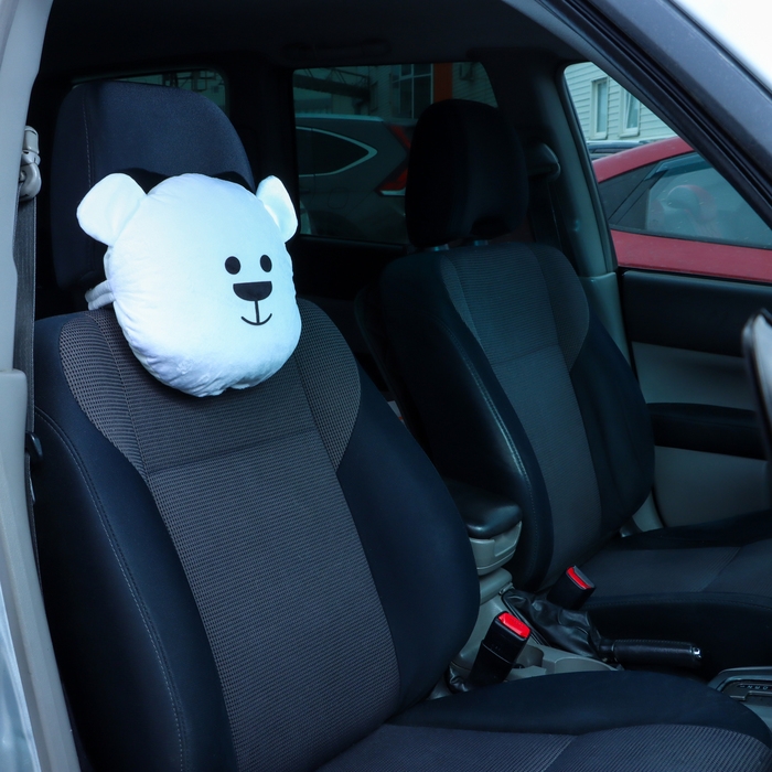 Подушка на подголовник в виде мишки - это забавный и функциональный аксессуар для автомобиля. Размеры подушки составляют 33x31x10 см, а крепится она на резинке к подголовнику сиденья.