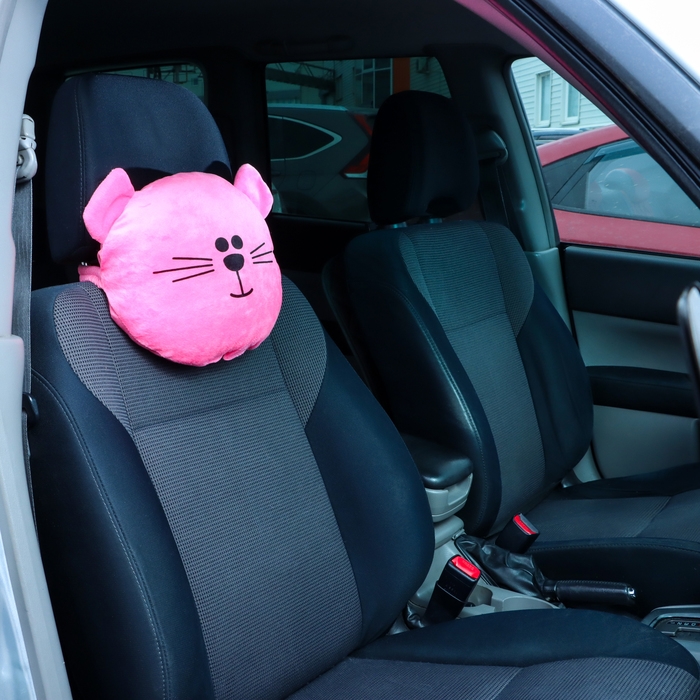 Подушка на подголовник в виде розовой пантеры - это забавный и функциональный аксессуар для автомобиля. Размеры подушки составляют 33x31x10 см, а крепится она на резинке к подголовнику сиденья.