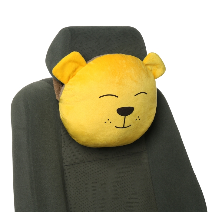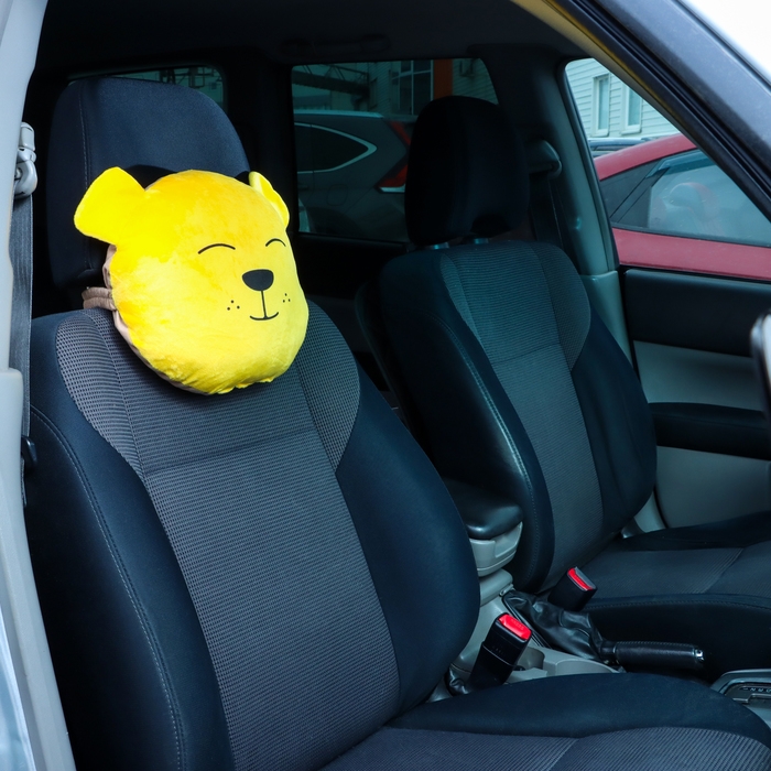 Подушка на подголовник в виде мишки - это забавный и функциональный аксессуар для автомобиля. Размеры подушки составляют 33x31x10 см, а крепится она на резинке к подголовнику сиденья.