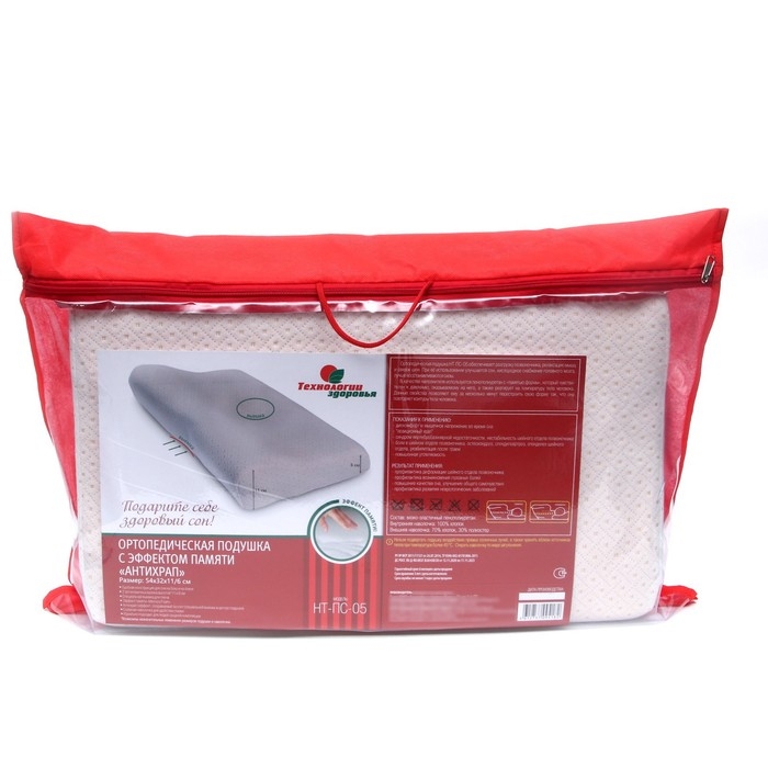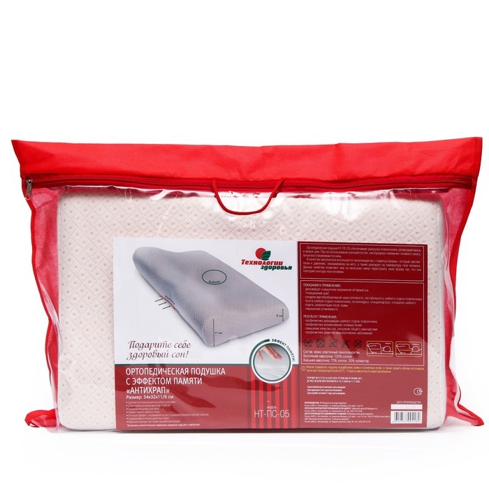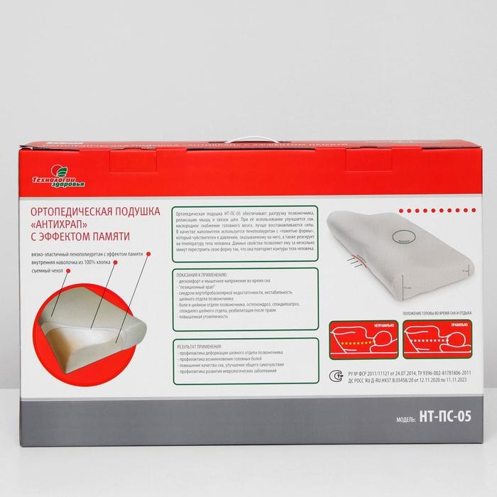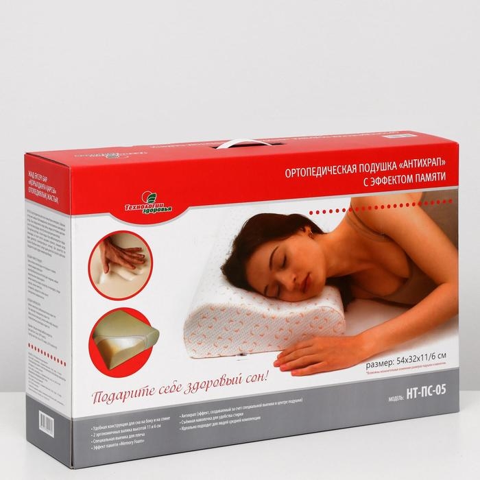 Подушка ортопедическая НТ-ПС-05 "Антихрап", для взрослых, с эффектом памяти и выемкой под плечо, 54x32 см, валики 11/6 см