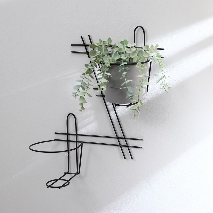 Подвес для кашпо, настенный, на 2 горшка, d = 16 см, чёрный, «Зигзаг»