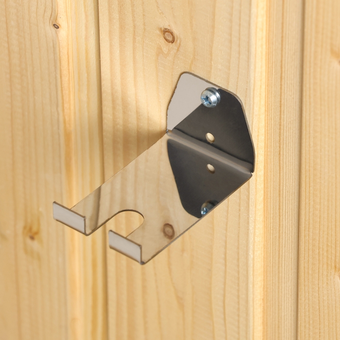 Подвес (кронштейн) позволяет хранить черпаки, экономить место и поддерживать порядок в бане. Изготовлен из нержавеющей стали, что обеспечивает прочность, долговечность и устойчивость к коррозии.