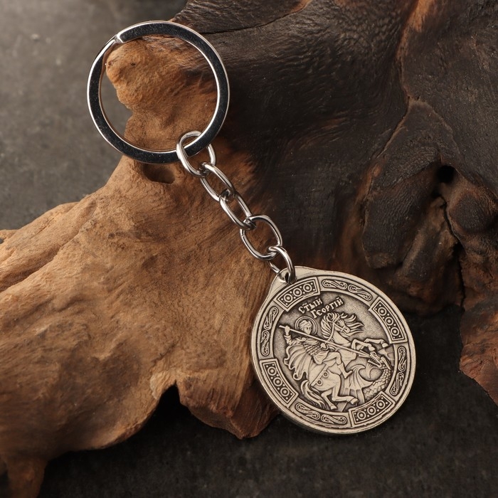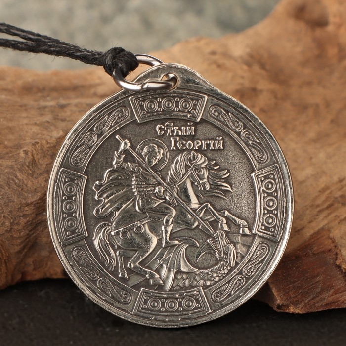 Подвеска Георгий Победоносец и Ангел хранитель, 12г, 33х30 мм, юв. мельхиор