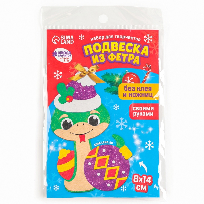 Подвеска из фетра на новый год своими руками «Змея с шариком», новогодний набор для творчества