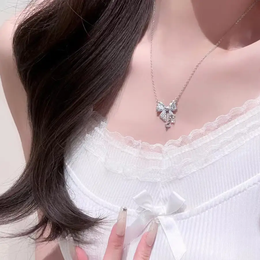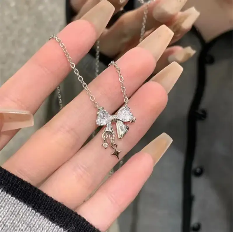 Подвеска на цепочке с камнем Бантик серебристая
