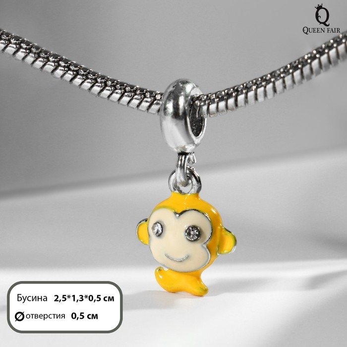 Подвеска «Обезьянка», цвет оранжевый в серебре