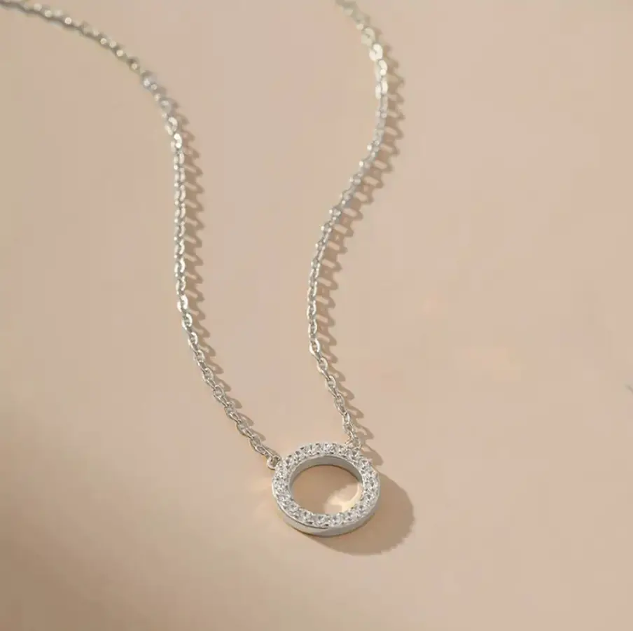Подвеска с цепочкой Круг с кристаллами серебристая