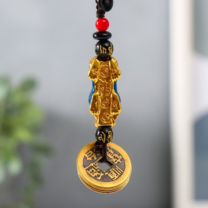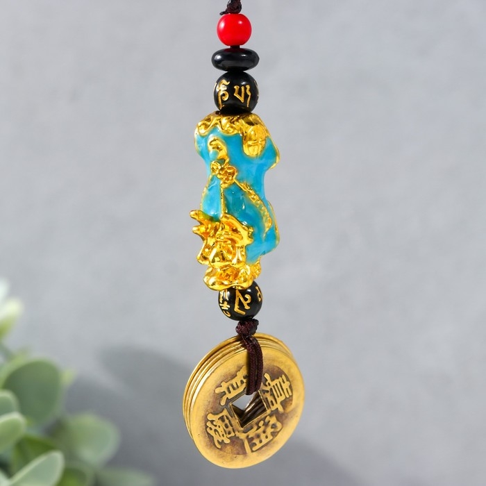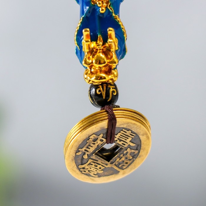 Подвеска с монетой "Дракон" синий 12х1,5 см