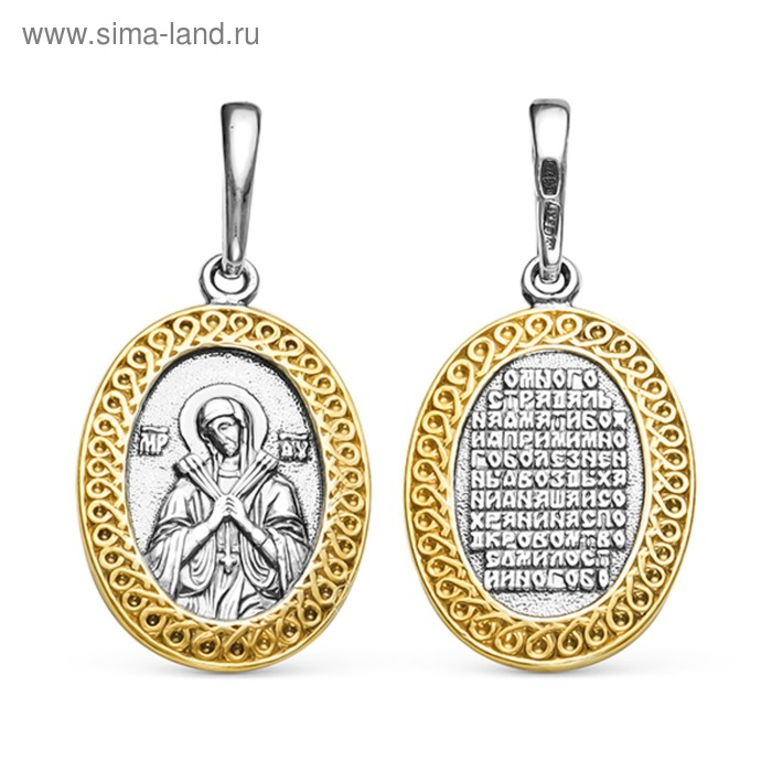 Подвеска «Семистрельная икона Божьей Матери» овал, посеребрение с оксидированием, выборочная позолота