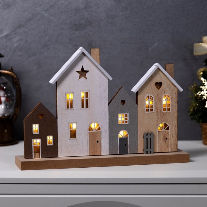 Подвеска световая "Городок", 30х6х21 см, 12 LED, CR2032x1 (в компл.), свечение тёплое белое
