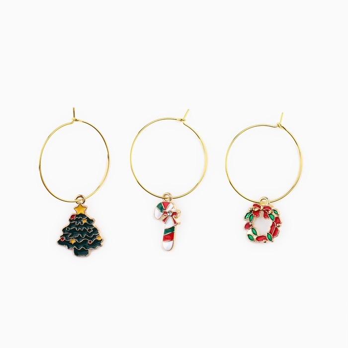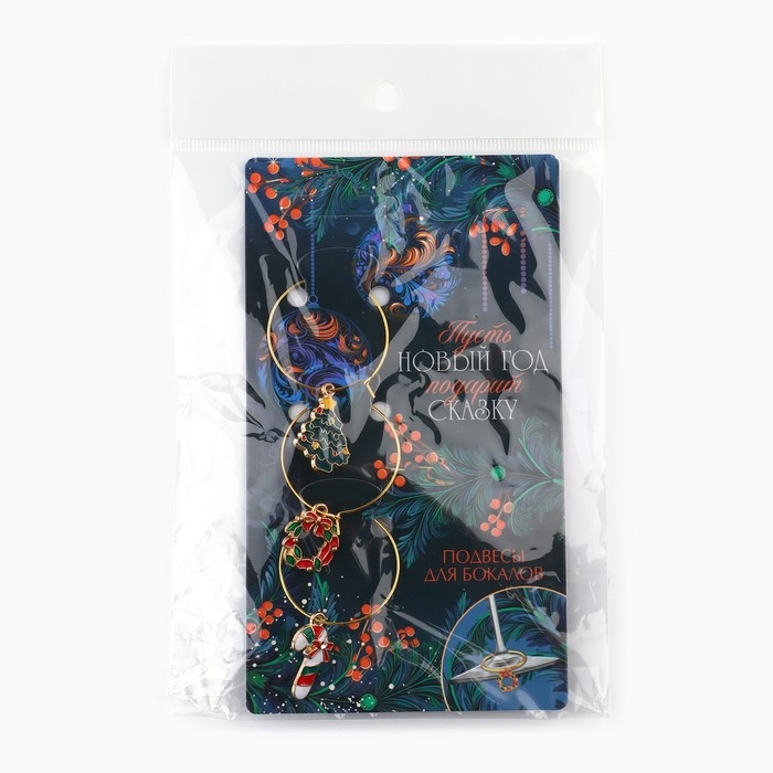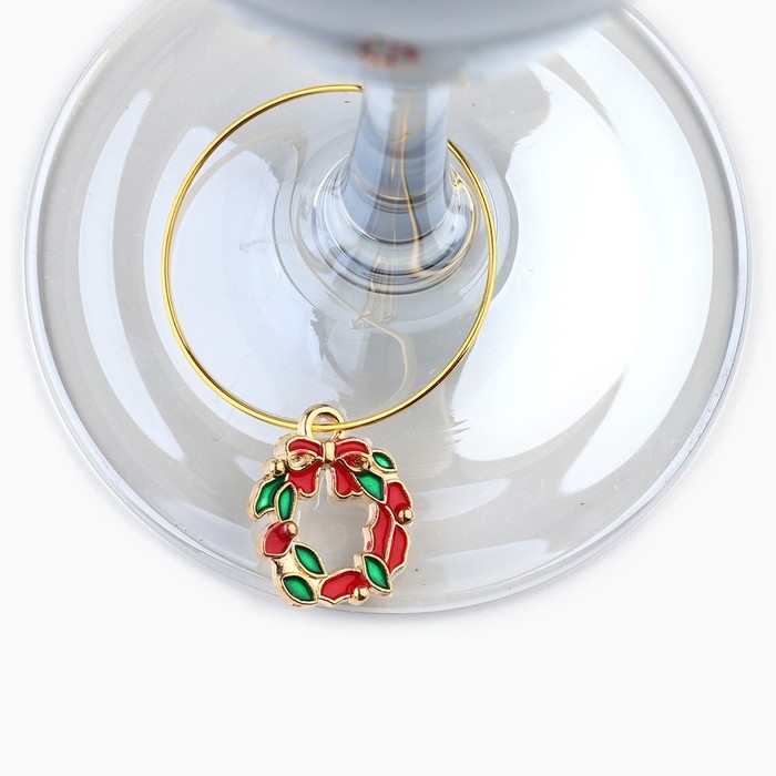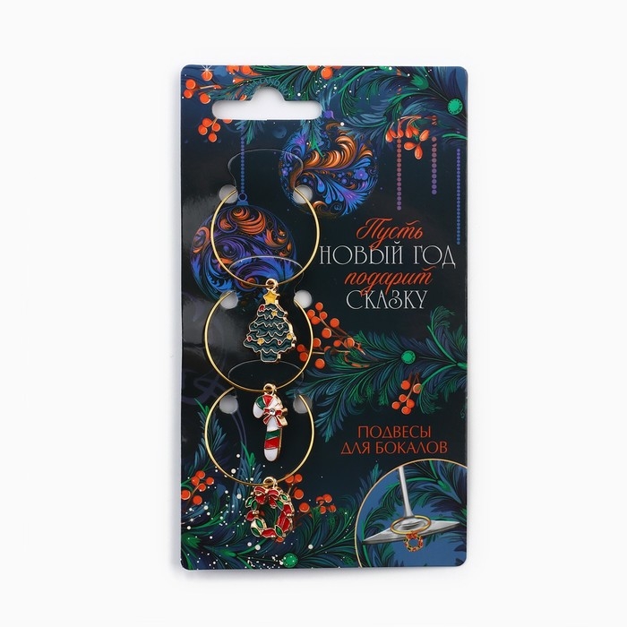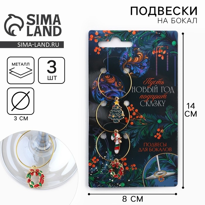 Подвески на ножки бокала новогодние «Счастливого нового года» на Новый год, 3 шт,, диам, 3 см