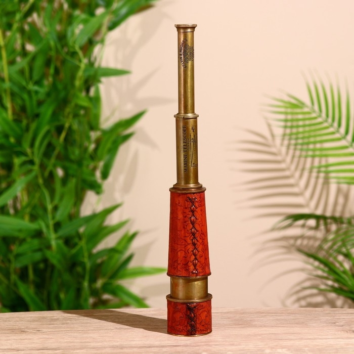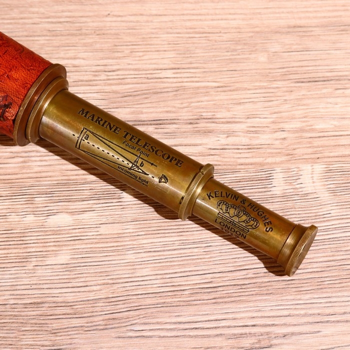 Подзорная труба с гравировкой 43 см, латунь, кожа