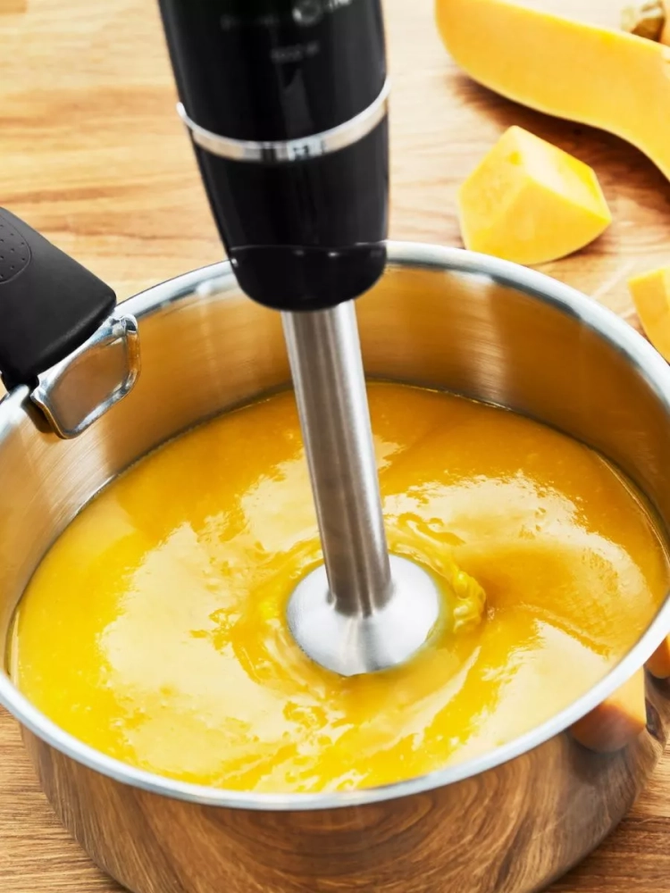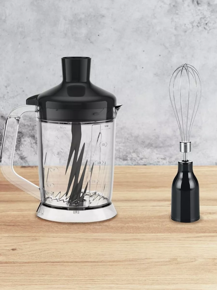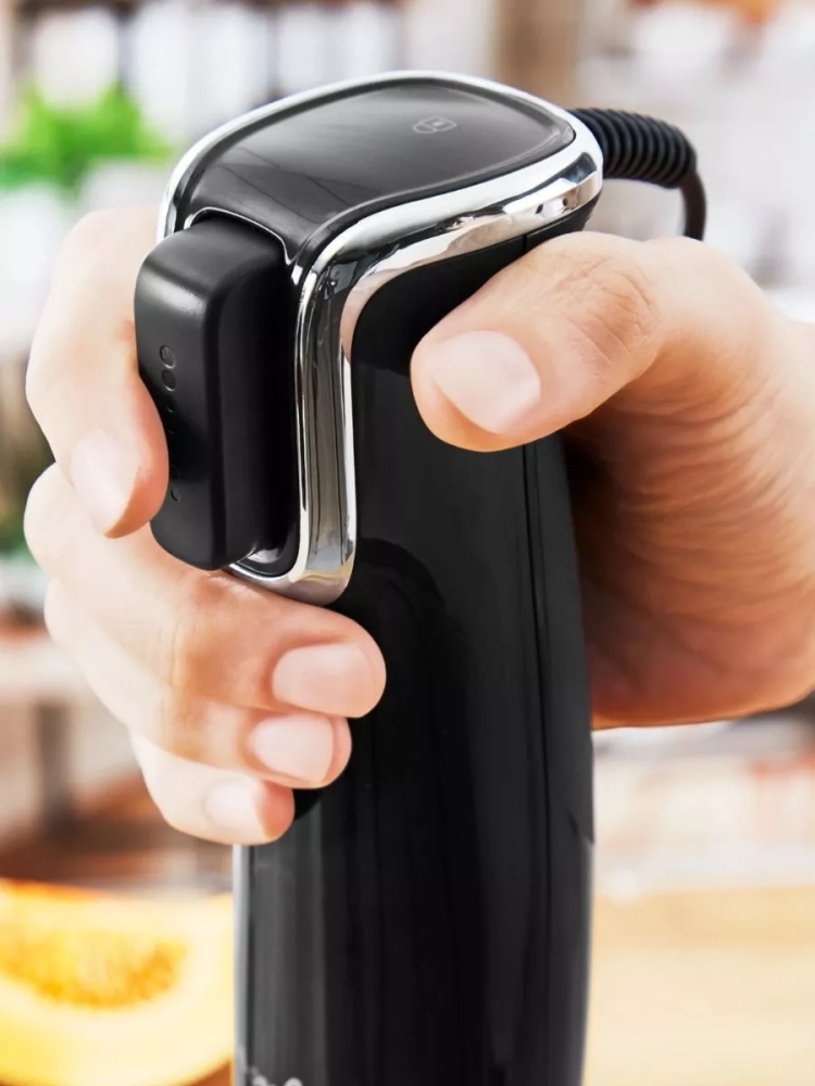 Ручной блендер сочетает в себе исключительную производительность и высочайшую точность измельчения ингредиентов. Мотор электрического прибора мощностью 1000 Вт и технология лезвий Powelix Life обеспечивают идеальную кремовую текстуру до 30% быстрее. Кухонный металлический блендер 5 в 1 станет универсальным помощником на вашей кухне, который легко справится с широким спектром кулинарных задач: приготовление смузи, замешивание теста, колка льда, нарезка зелени или мяса.