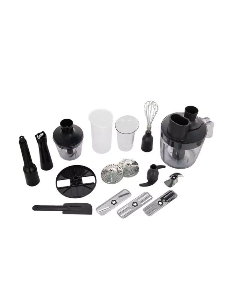 В комплект входит 16 предметов, чтобы у вас было все необходимое для создания идеальных блюд. Чтобы приготовить нежное пюре без комочков, домашний майонез, песто или пышный омлет, просто выбирайте подходящую насадку из набора и будьте уверены в результате.