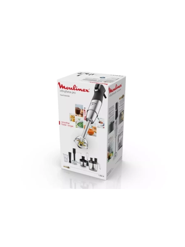 C долговечным погружным блендером Moulinex InfinyForce Pro DD95MD10 процесс приготовления будет еще быстрее, а результат — еще однороднее. Скорость измельчения регулируется силой нажатия, чтобы вы получали идеальный результат не выключая прибор. Благодаря мощному 1200 Вт мотору, электрический мультиблендер обеспечивает быстрое и эффективное измельчение и смешивание, а также гарантирует безупречное качество день за днем.