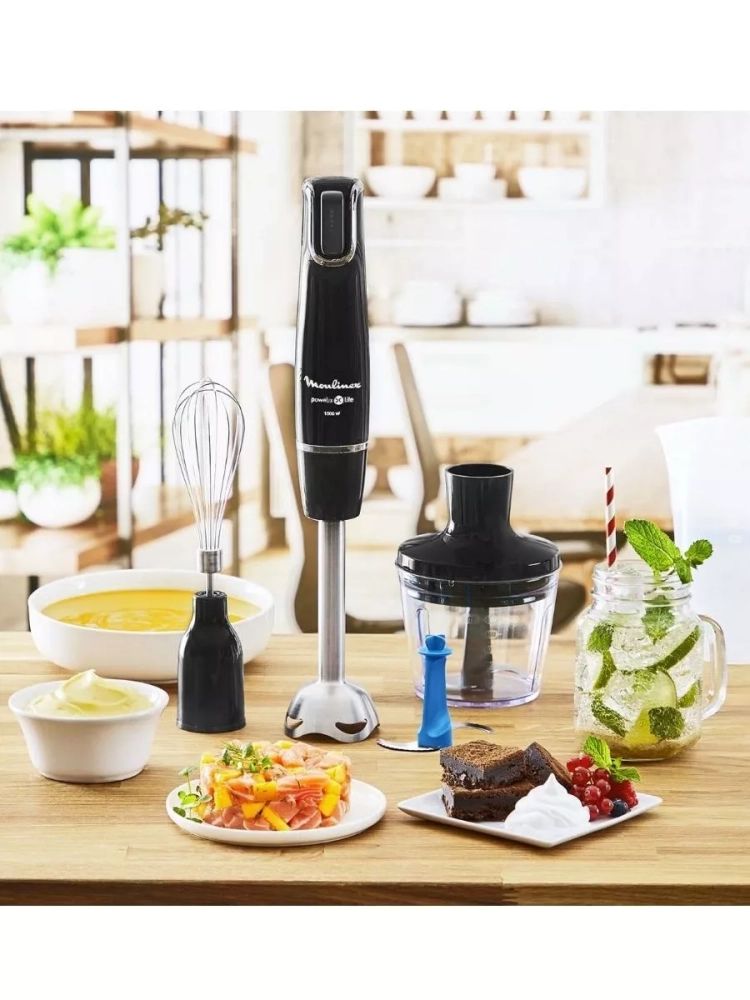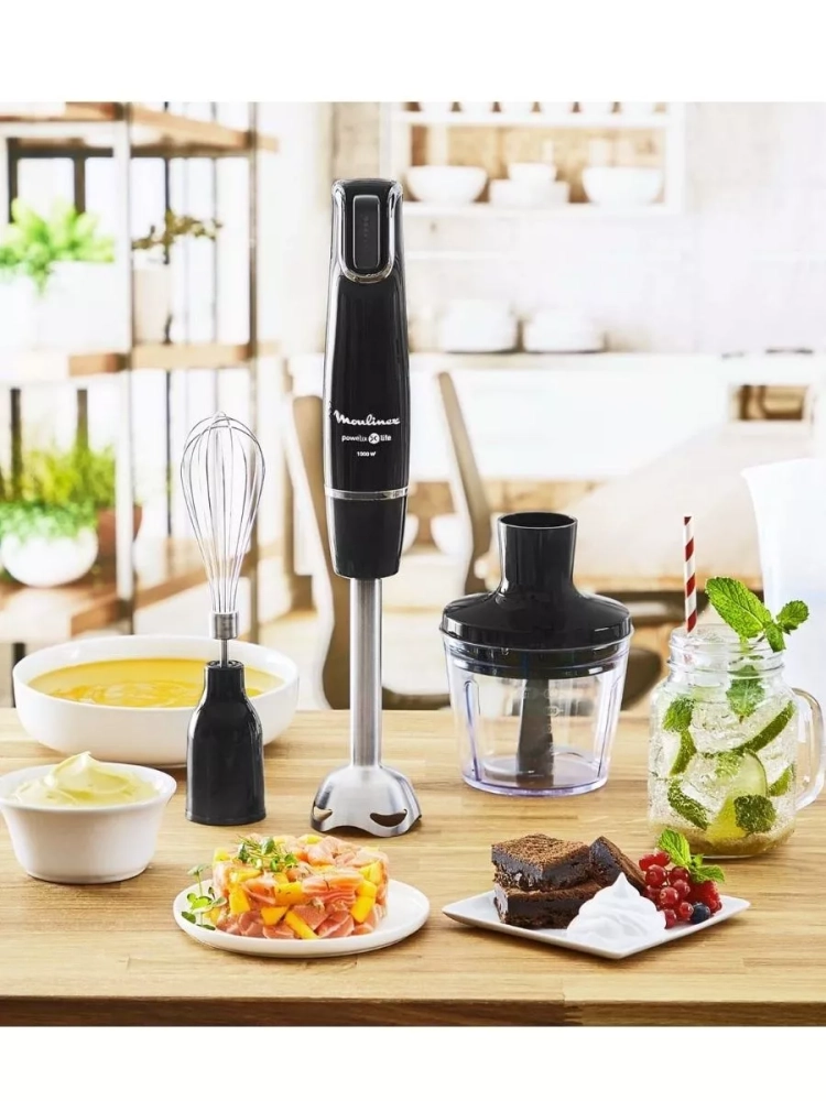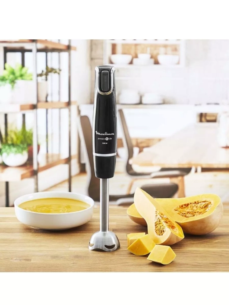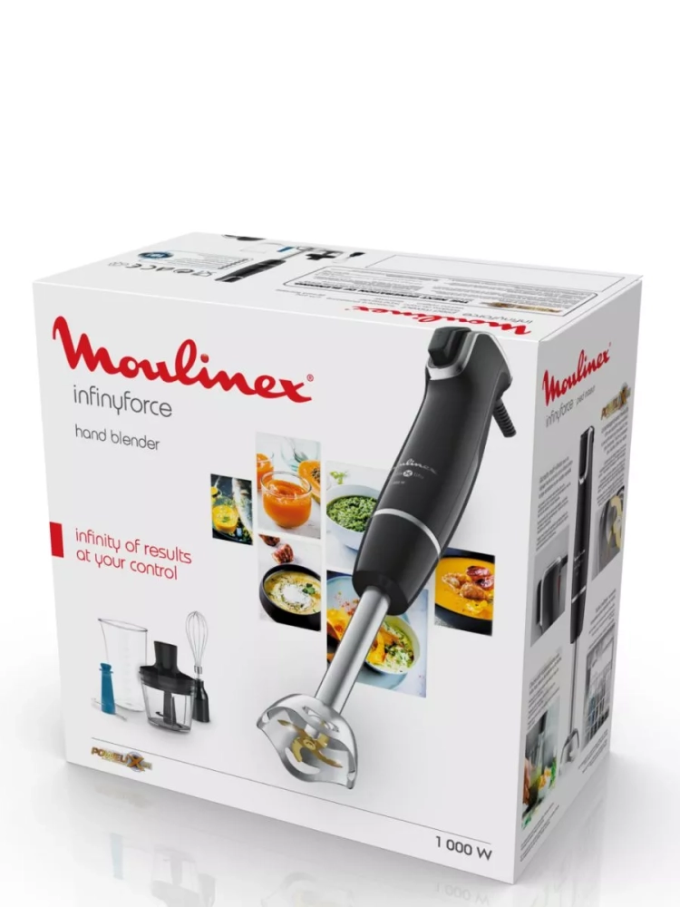 С погружным блендером Moulinex InfinyForce V2 DD944810, вы получите все необходимое для приготовления блюд без ограничений. Насладитесь быстротой и эффективностью приготовления любимых рецептов благодаря электрическому мультиблендеру с мощным мотором 1000 Вт. Вы сможете регулировать скорость работы не выключая устройство благодаря интуитивно понятной системе управления.