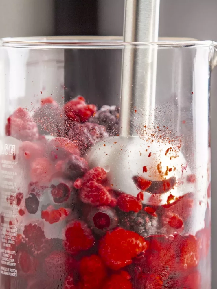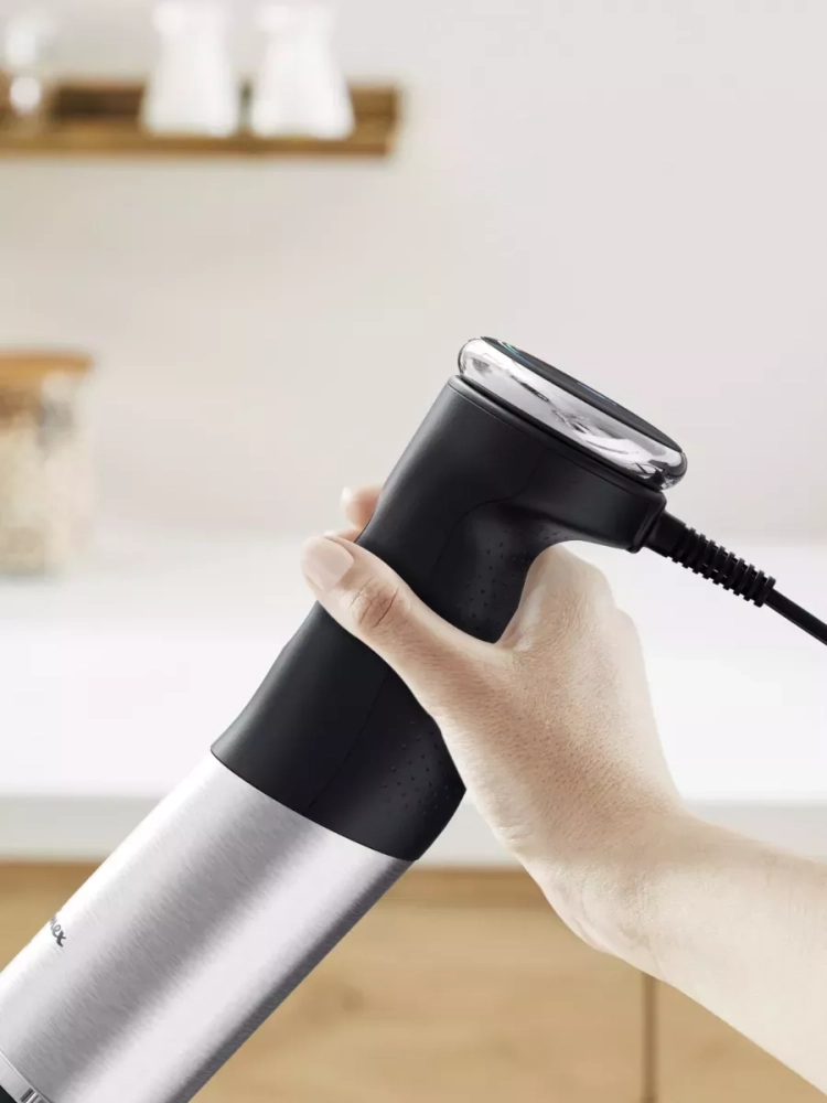 С легкостью переключайтесь между 20 скоростями и режимом «Турбо» во время смешивания ингредиентов, не останавливая работу блендера. Погружной блендер выполнен в прочном металлическом корпусе и оснащен защитой от брызг и эргономичной ручкой с мягким нескользящим покрытием. Прибор разработан с учетом комфортного использования и простоты ухода, поэтому его съемные детали можно мыть в посудомоечной машине.