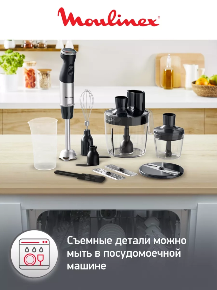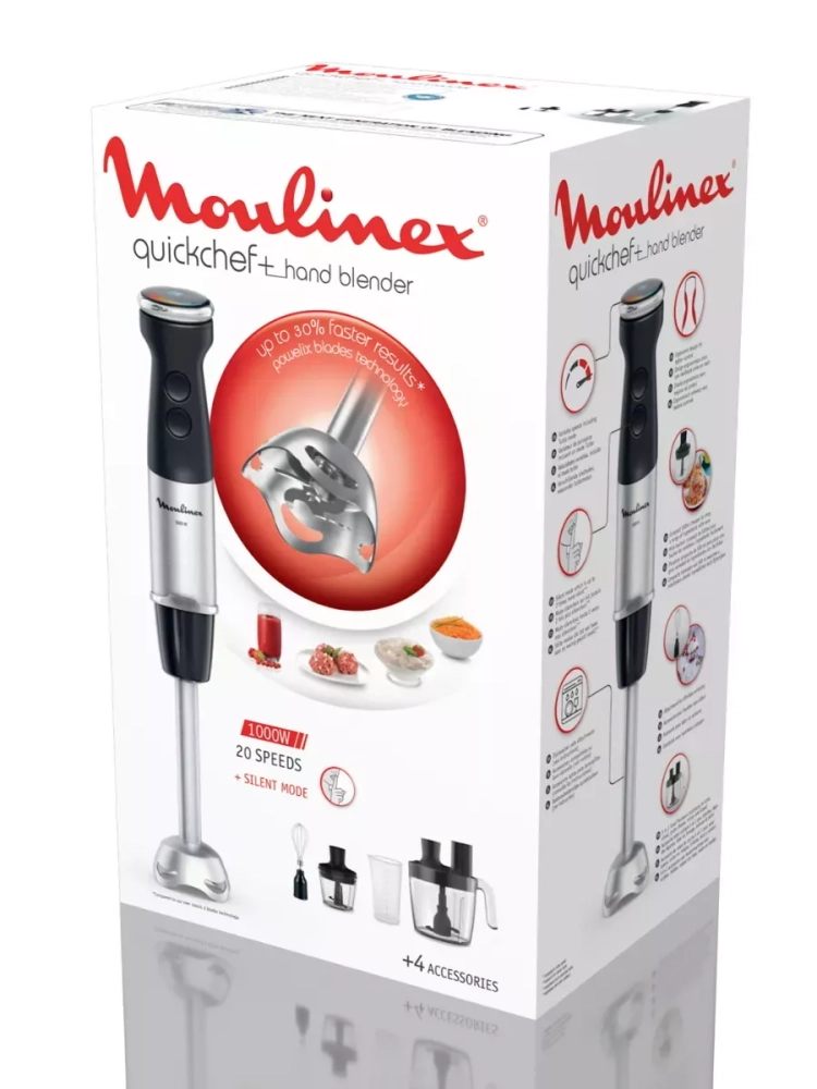 Погружной блендер Moulinex Quickchef+ DD67G810. Быстрое и эффективное измельчение без лишнего шума. С погружным блендером Quickchef+ от Moulinex вас ждет исключительная производительность и полный контроль над процессом измельчения ингредиентов. Эксклюзивная технология Powelix обеспечивает легкое и невероятно однородное смешивание даже самых твердых ингредиентов на 30% быстрее (по сравнению с классической технологией 2-х лезвий от Moulinex)!