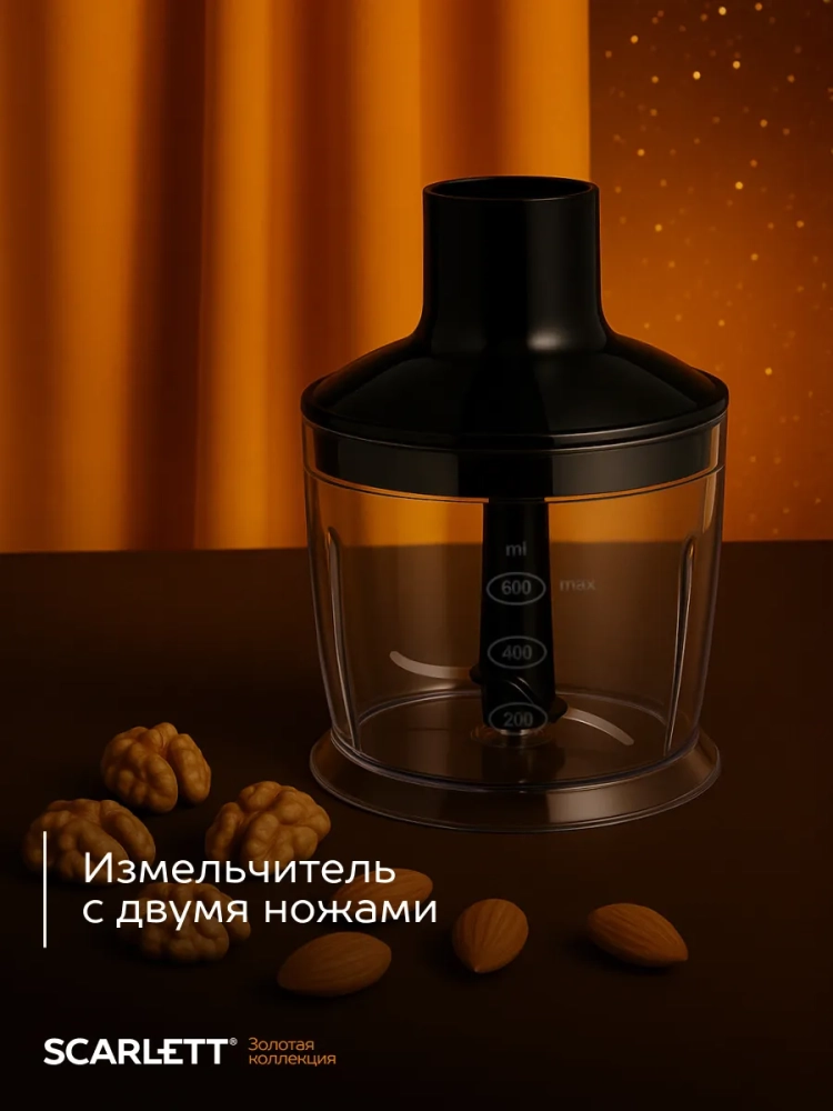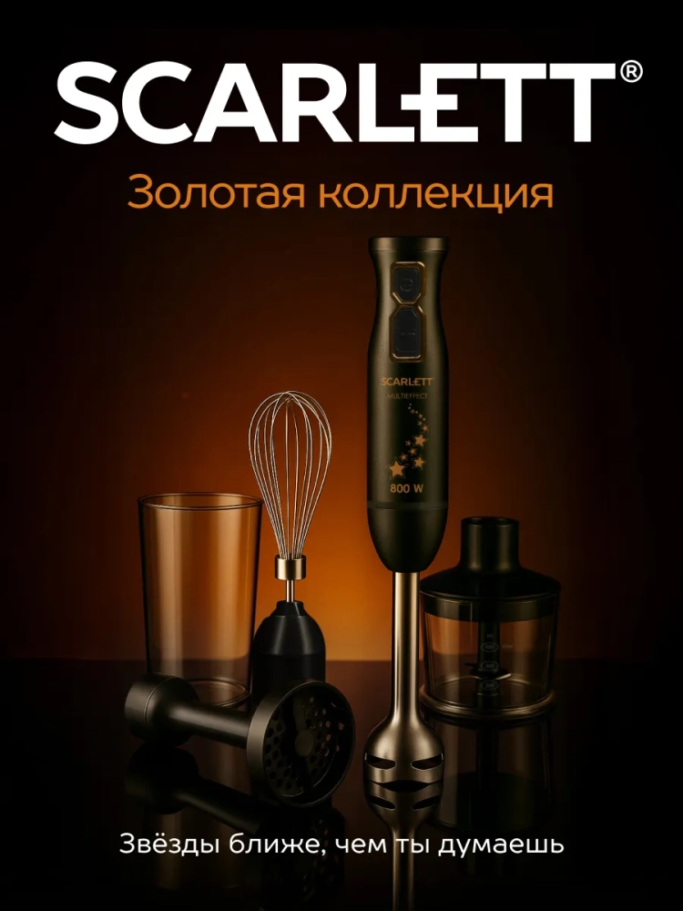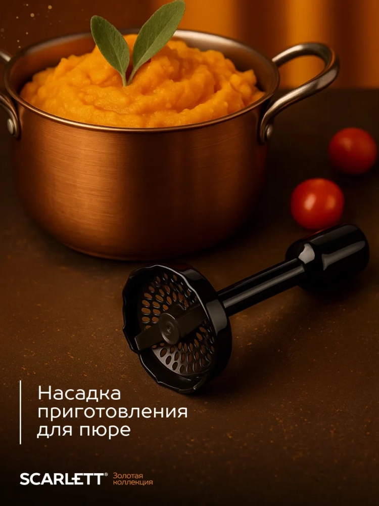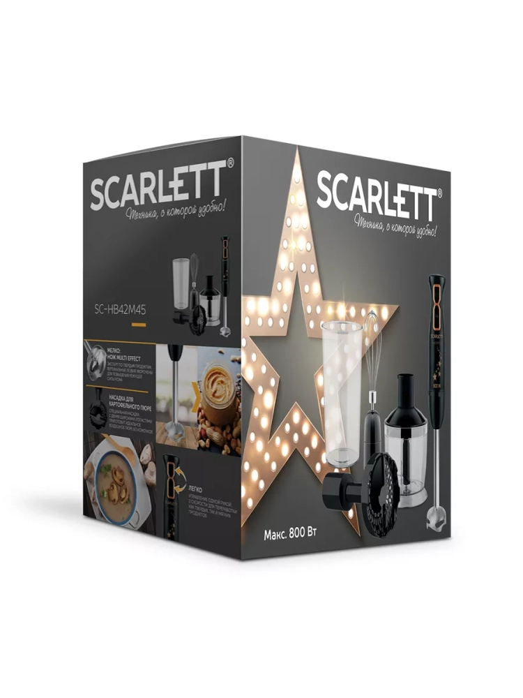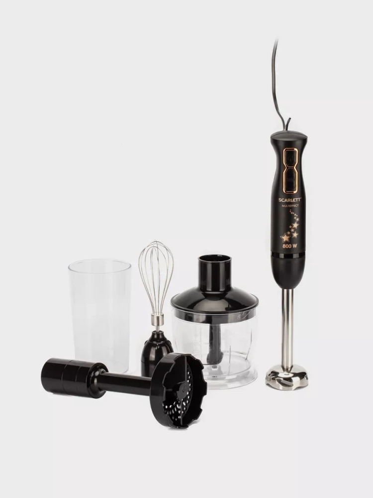 Погружной блендер Scarlett имеет мощный мотор 800 Вт, который обеспечивает быстрое и эффективное измельчение, смешивание, взбивание и даже пюрирование. Благодаря специальной насадке из термостойкого пластика Вы сможете с легкостью приготовить нежнейшее картофельное пюре без комочков. Эту насадку можно также использовать для приготовления детского питания из овощей и фруктов. Ножи и погружная часть блендера выполнены из нержавеющей стали марки Steel Pro, не деформируются и легко моются в посудомоечной машине. Удобная ручка и небольшой вес позволят пользоваться блендером каждый день. Для комфортной работы предусмотрено 2 скоростных режима, а для твёрдых сортов сыров и орехов в модели есть специальная кнопка с TURBO режимом.