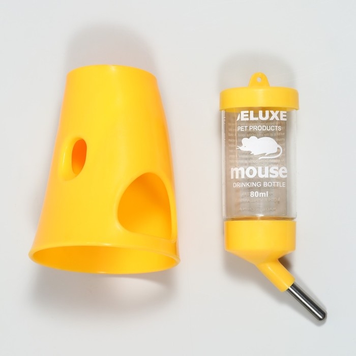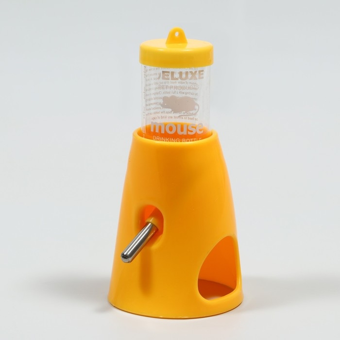 Поилка 80 мл с основанием-домиком для мелких грызунов, 8 х 8 х 16,5 см, жёлтая