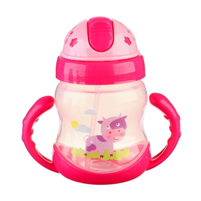 Поильник детский с силиконовой трубочкой, 200 мл., с ручками, цвет МИКС