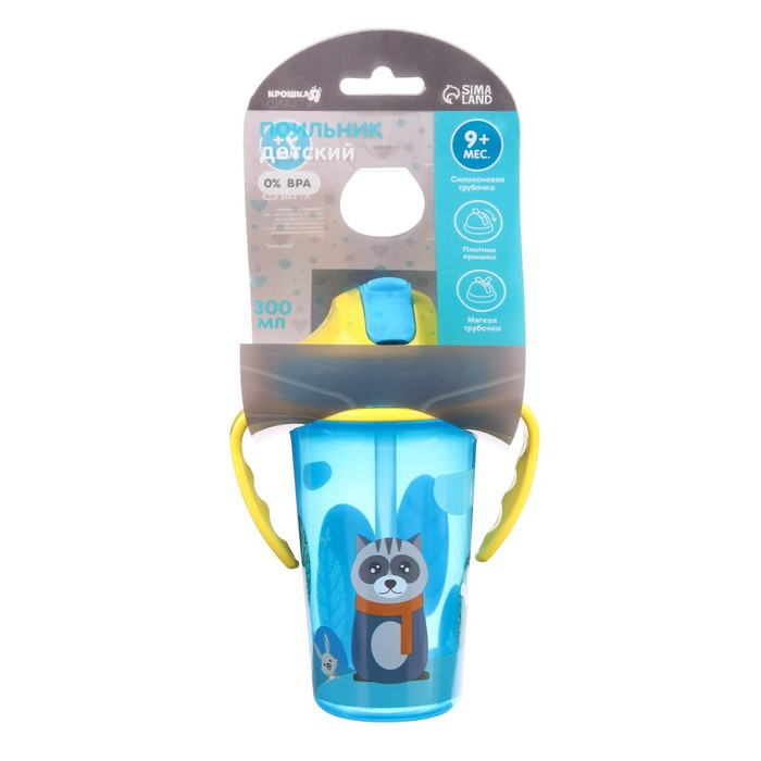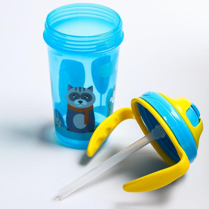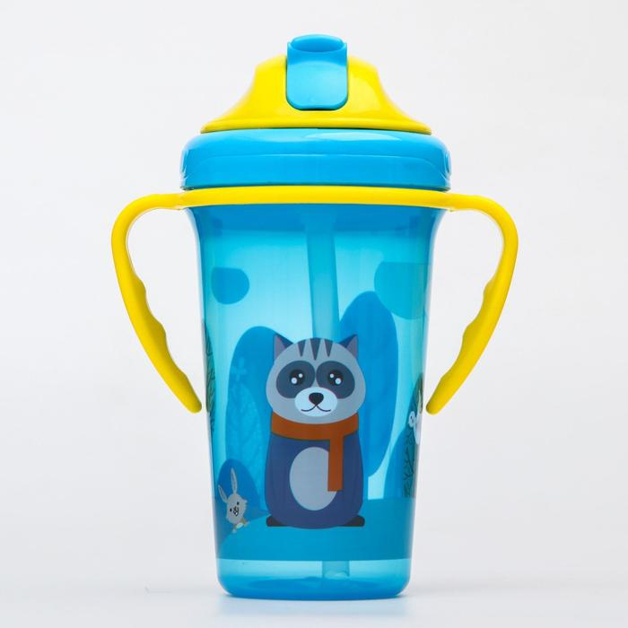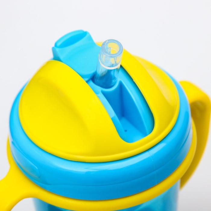 Поильник детский с силиконовой трубочкой, 300 мл., с ручками, цвет голубой