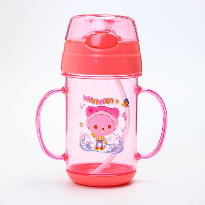 Поильник детский с силиконовой трубочкой, 300 мл., с ручками, цвета МИКС