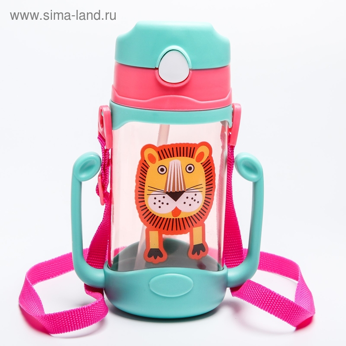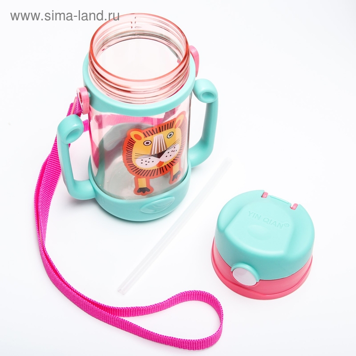 Поильник детский с силиконовой трубочкой «Лёва», 300 мл., с ручками, цвет бирюзовый
