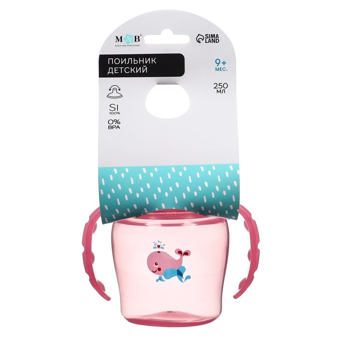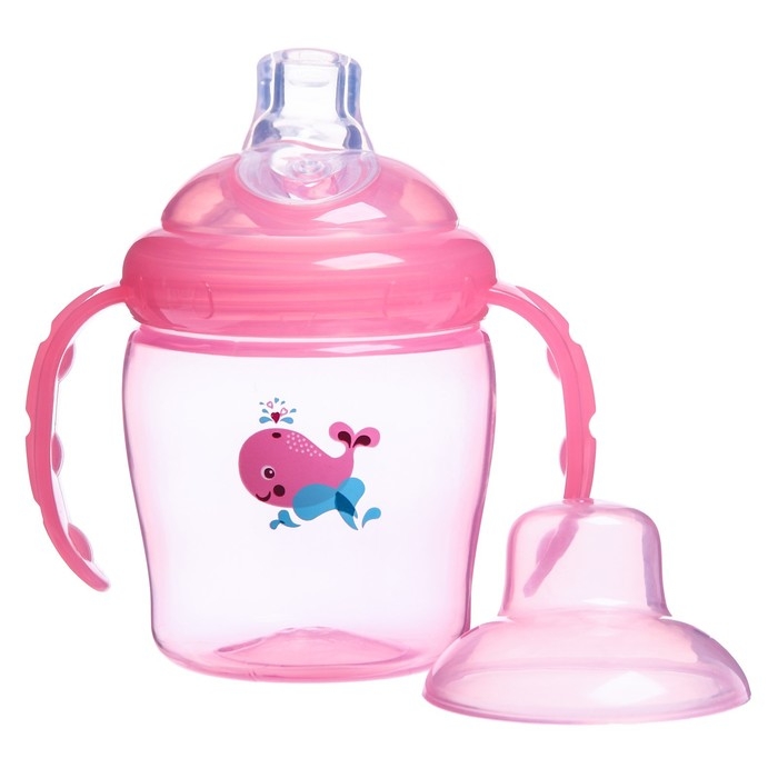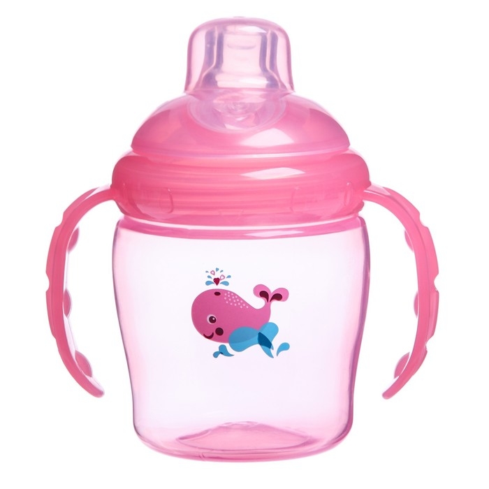 Поильник - непроливайка детский с мягким носиком, 250 мл., с ручками, цвет розовый