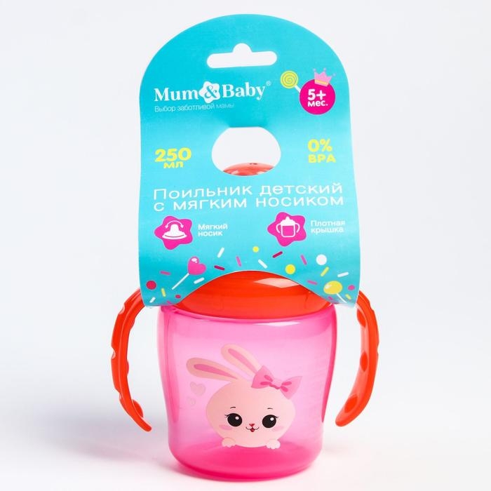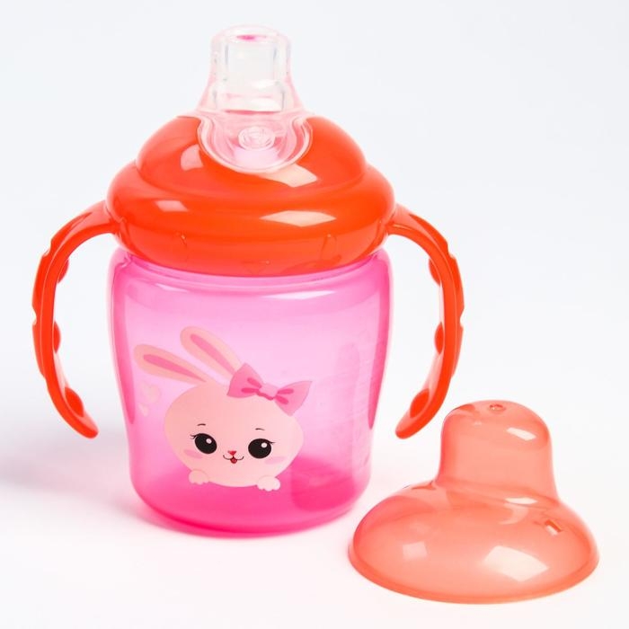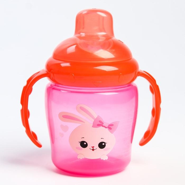 Поильник - непроливайка детский с мягким носиком «Зайка Полли», 250 мл., с ручками, цвет розовый