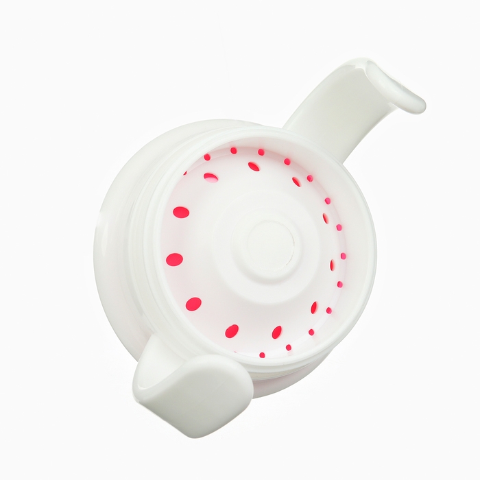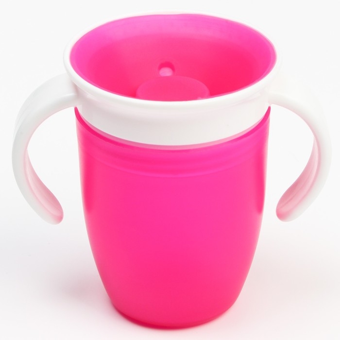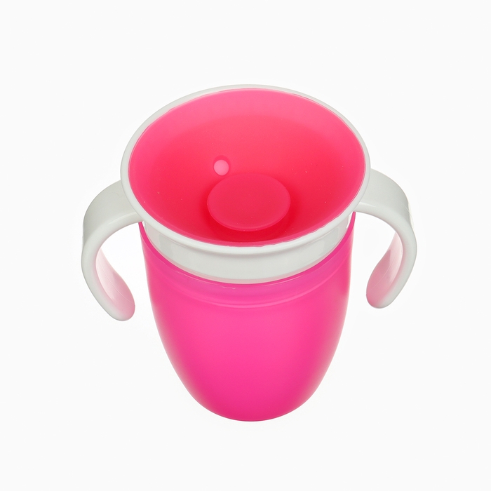 Этот обучающий поильник позволяет малышу пить напиток по всей окружности поильника 360 градусов. Напиток равномерно распределится под крышкой, под каким бы углом ребёнок не наклонил емкость. Так же конструкция оснащена защитой от проливания, поэтому жидкость не выльется даже если перевернуть поильник.