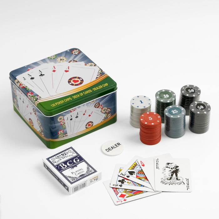 Покер, набор для игры (карты 54 шт, фишки 120 шт.), с номиналом, 15 х 15 см