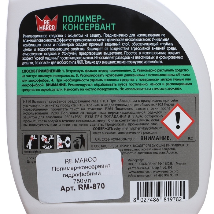 Полимер-консервант гидрофобный RE MARCO, триггер, 750 мл