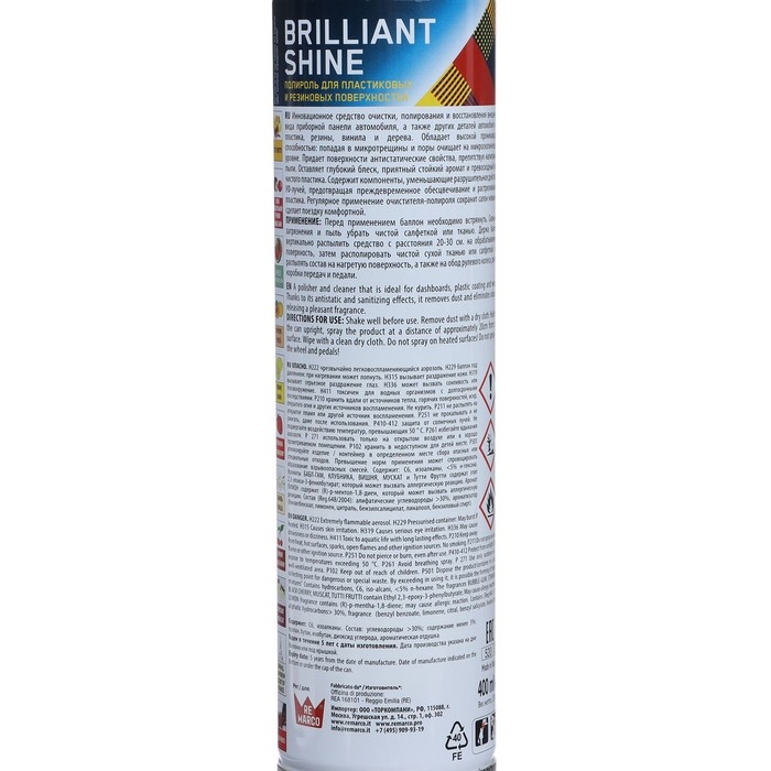 - Лёгкое применение: Благодаря форме выпуска в аэрозоле, полироль удобно и равномерно наносится на обрабатываемые поверхности.