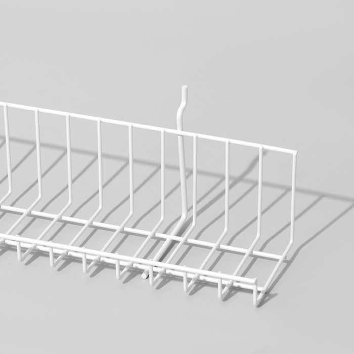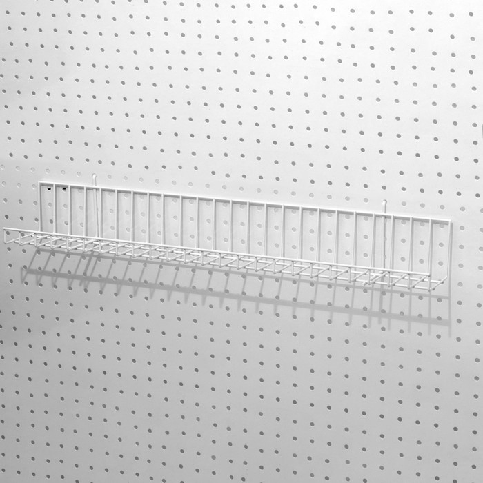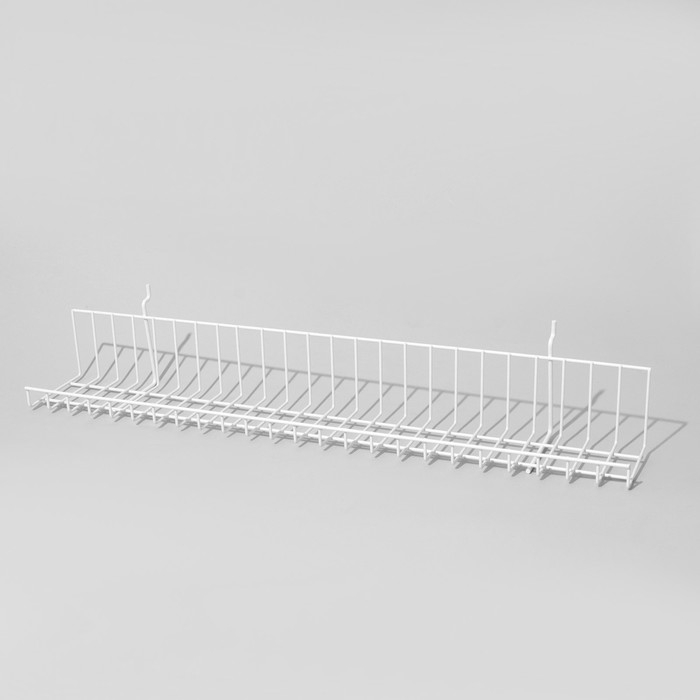Полка без боковин крепится к сеткам, сетчатым модулям, стендам и стойкам с помощью специальных крючков. Изделие предназначено для демонстрации различной продукции.