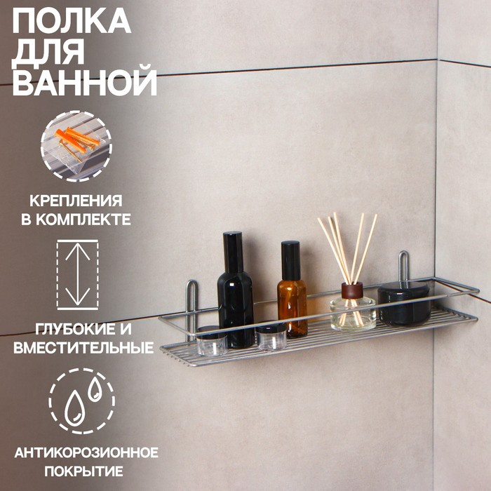 Полка прямоугольная, 1 ярус, 40×11,5×8,5 см, цвет хром