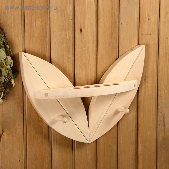 Полка вешалка "Двулистник" для масла с 2 крючками , 5 отверстий для масла