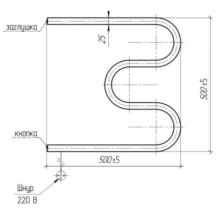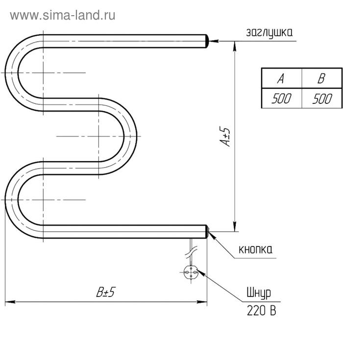 Полотенцесушитель электрический ТЕРА, М-образный, 500х500 мм