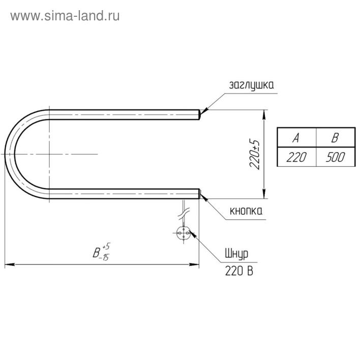 Полотенцесушитель электрический ТЕРА, П-образный, 220х500 мм
