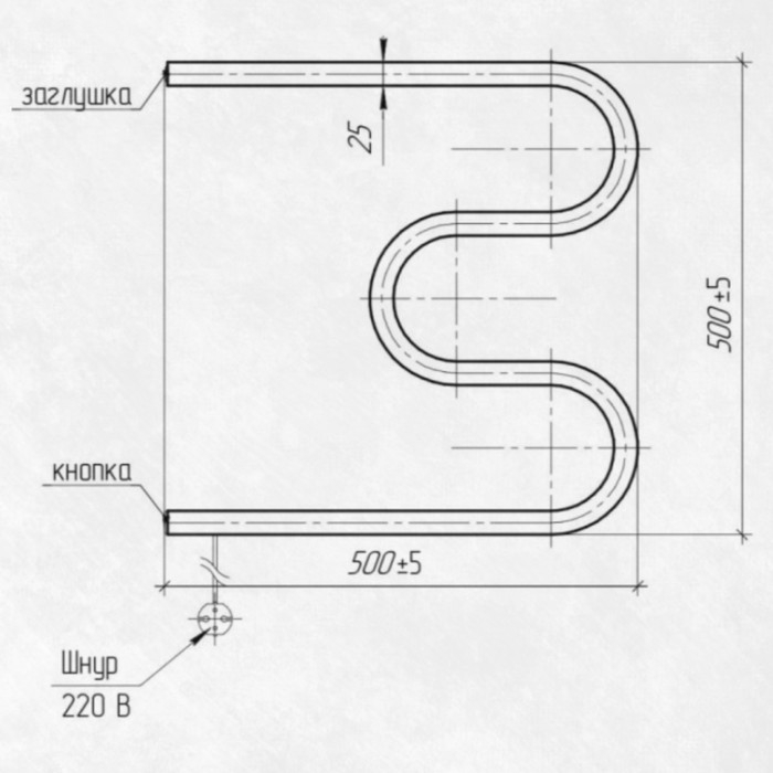 Полотенцесушитель электрический ZEIN, PE-02, М-образный, 500х500 мм, белый