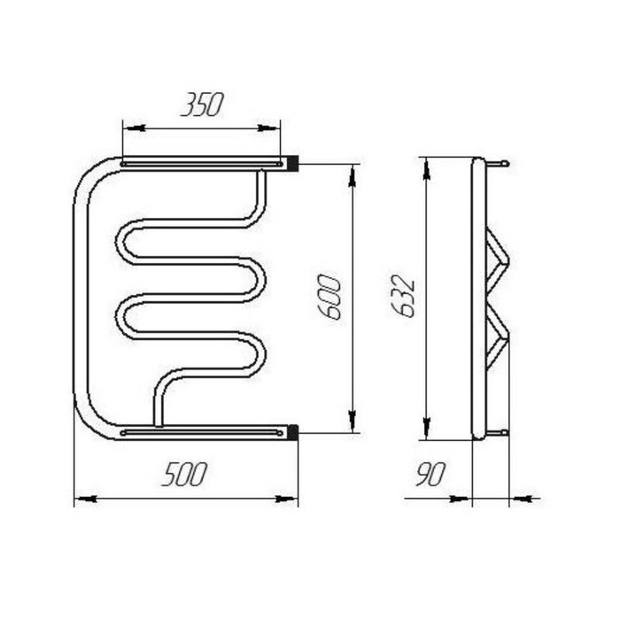 Полотенцесушитель водяной ТЕРА "Фокстрот-Лиана", 500х600 мм, наружная резьба 1"