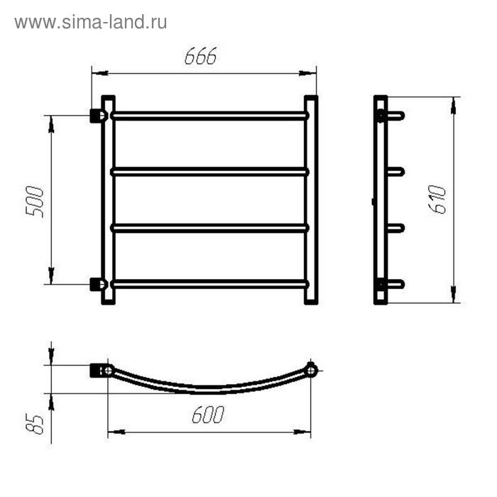 Полотенцесушитель водяной ТЕРА "Лидер", 500х600 мм, боковое подключение, 4 перекладины