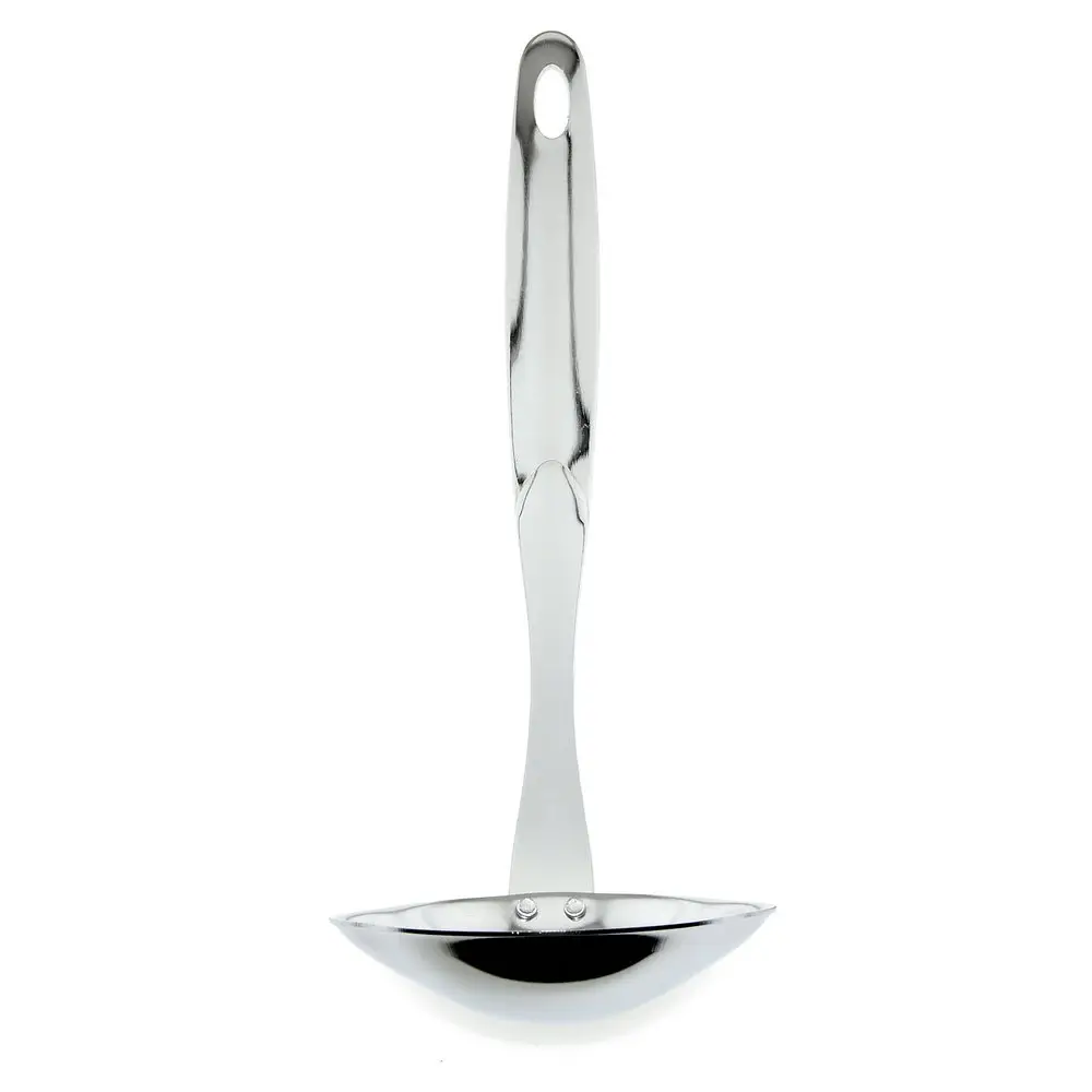 Половник изготовлен из стали с хромированным покрытием, что обеспечивает эстетичный внешний вид. Материал гигиеничен, рассчитан на длительный срок службы. Инструмент может использоваться не только для выпекания блинов, но и для разливания компотов, киселей, морсов. Отверстие на ручке изделия обеспечит удобство хранения – половник можно повесить на крючок. После использования вымыть с жидкими моющими средствами.