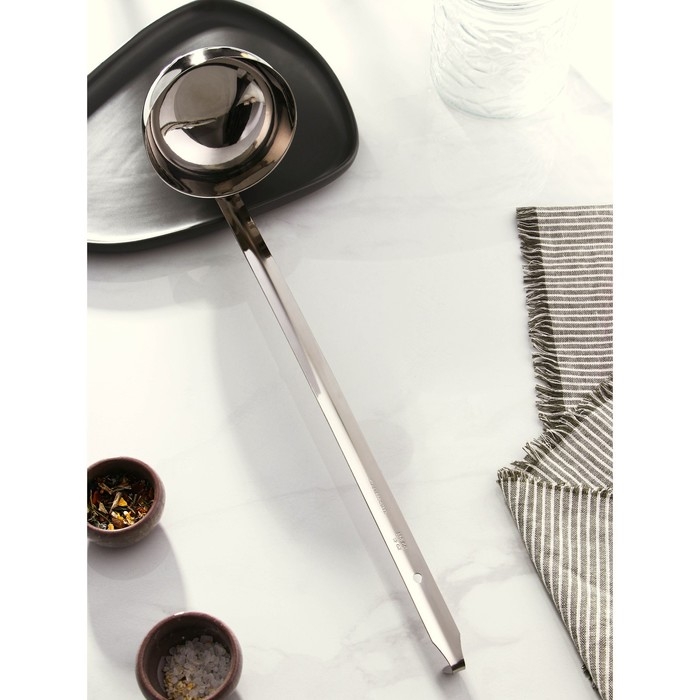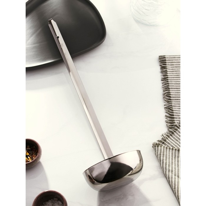 Половник выполнен из нержавеющей стали, он займет достойное место среди аксессуаров на вашей кухне.